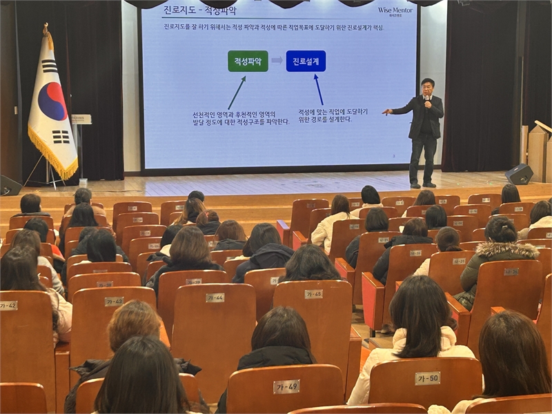 ◆ 천안교육지원청, 예비 중학교 학부모 대상 교육 실시충청남도천안교육지원청(교육장 차덕환)은 12월 3일 천안교육지원청 대회의실에서 2026학년도 중학교 예비 학부모를 대상으로 교육을 실시했다. ◆ 와이즈멘토 조진표 대표, 진로·진학 설계 특강 이번 교육은 "사회 및 교육제도 변화에 따른 진학과 진로 설계"를 주제로 진행