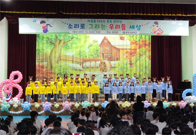 ◆ 프로그램 공개 발표회 개최아산교육지원청(교육장 신세균)은 초등학교 3곳(산동초, 충무초, 아산갈산초)에서 '맑은 마음 우리말 동요 발표회'를 공개 운영했다고 5일 발표했다. 아산교육지원청 인성교육 특색 프로그램인 이 발표회에는 관내 초등학교 10곳이 참여 중이다. ◆ 정서 발달과 자신감 강화 이 프로그램은 우리말 동요