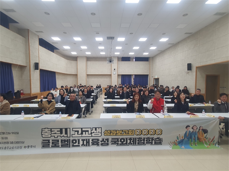 국문 기사◆ 23일 충주교육청서 성과공유회 개최 충청북도 충주교육지원청(교육장 이정훈)이 23일 충주교육지원청 3층 대회의실에서 '2025 충주시 고교생 글로벌 인재육성 국외체험학습 성과공유회'를 열었다. 이 자리에 이정훈 교육장, 김진석 충주시 부시장, 김낙우 충주시의회 의장, 이정범 충청북도의회 교육위원장을 포함한 학