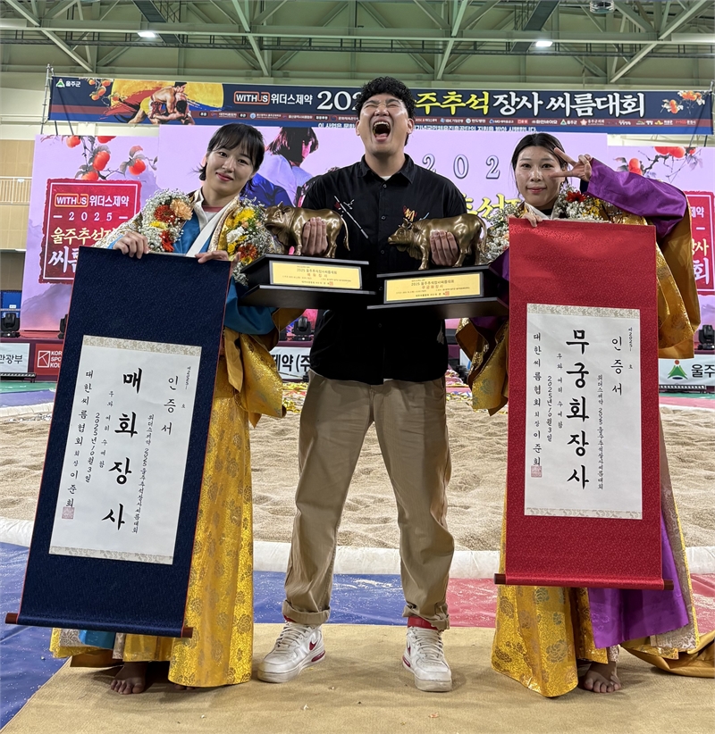 충청북도 괴산군(군수 송인헌)이 괴산군청 직장운동경기부 여자씨름단(감독 김무열)이 '2025 울주 추석장사씨름대회'에서 매화급 1위, 무궁화급 1위, 단체전 2위의 성과를 거뒀다고 10일 밝혔다. 이번 대회는 지난 2일부터 8일까지 울산광역시 울주군에서 열렸다.개인전 2관왕·단체전 준우승... 저력 과시 개인전에서는 괴산