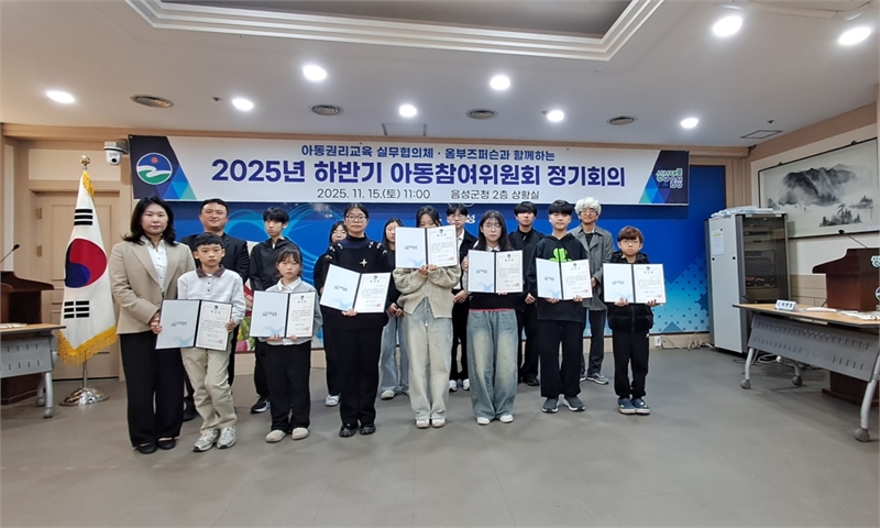국문 기사◆ 30명 참석 정기회의 음성군은 15일 군청 상황실에서 2025년 하반기 아동참여위원회 정기회의를 개최했다. 아동참여위원회와 아동권리 옴부즈퍼슨, 아동권리교육 실무협의체 위원 등 30여 명이 참석했다. 참석자들은 아동참여 활성화와 권리증진을 위한 다양한 논의를 진행했다. 음성군은 신규 아동참여위원 11명에게 위