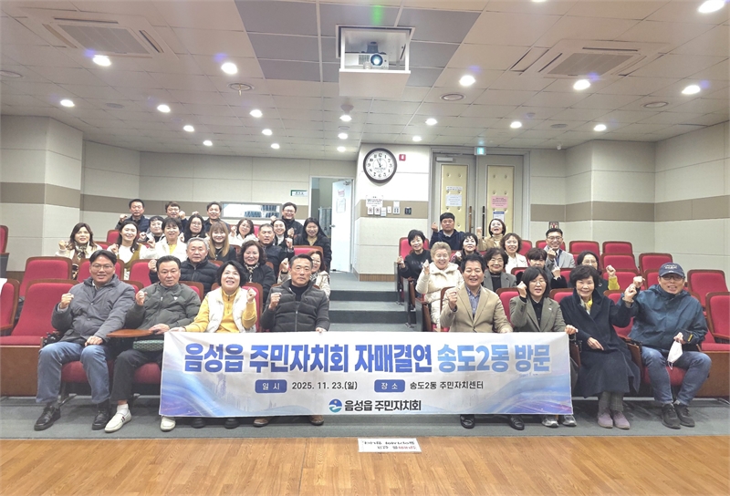 국문 기사◆ 지난 23일 인천에서 개최된 자매결연 교류행사 음성읍 주민자치회(회장 곽상선)는 지난 23일 인천광역시 연수구 송도2동 주민자치센터에서 송도2동 주민자치회와 자매결연 교류행사를 개최했다. 이 행사에는 음성읍 주민자치회, 송도2동 주민자치회, 음성군과 연수구 관계 공무원들이 참석했다. ◆ 2019년 맺은 자매결