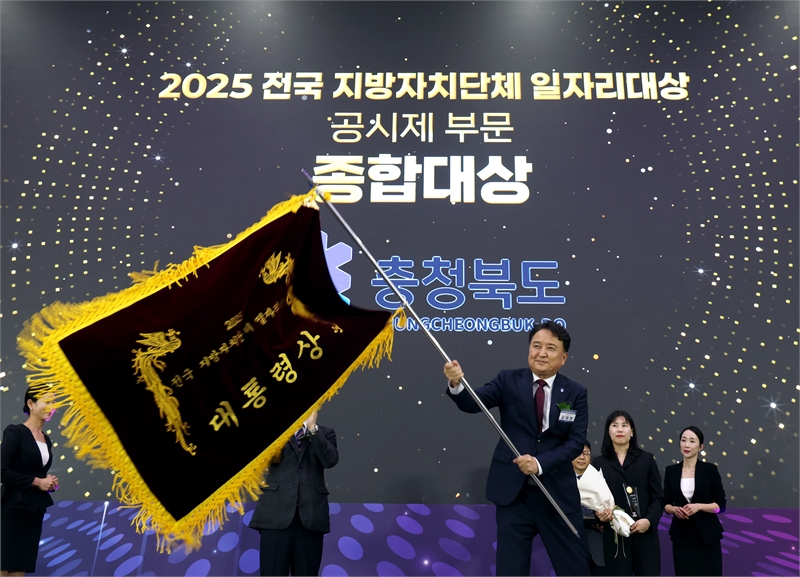 충청북도가 30일 청주 오스코에서 열린 고용노동부 주관 ‘2025 전국 지방자치단체 일자리 대상’ 시상식에서 종합대상인 대통령상을 받았다.
