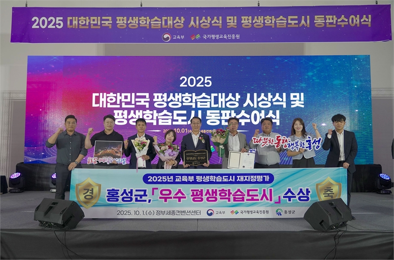 홍성군은 지난 1일 정부세종컨벤션센터에서 열린 '2025 대한민국 평생학습대상 및 평생학습도시 동판수여식'에서 교육부장관 기관표창을 수상하며, 전국 평생학습 활성화를 선도하는 도시로 위상을 높였다.