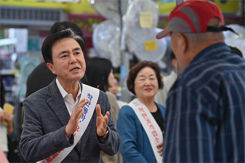 김태흠 충남도지사가 추석을 앞두고 천안·아산 지역 전통시장을 찾아 상인 및 도민과 소통하며 현장의 목소리를 청취했다.