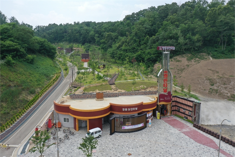 The Yeongdong Wine Tunnel is a space created in 2018 to revitalize tourism and foster the local wine industry, operating 10 theme zones including Vineyard Journey, Wine Culture Center, Wine Experience Center, Yeongdong Wine Center, and Fantasy Tunnel within a 420m-long tunnel. The interior of the tunnel maintains an average temperature of 15 degrees throughout the four seasons, allowing comfortable viewing even in hot summer, and visitors can enjoy various programs such as wine tasting and sales, wine making experiences, and exhibition viewing.