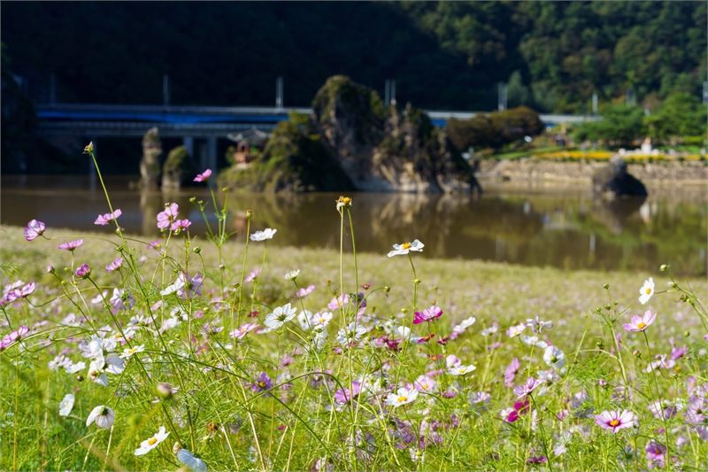 The county newly renovated photo zones and walking paths this autumn to create the 'Dodam Sambong View Garden.' Walking along the path through the flowers allows visitors to view the rocky cliffs of Sambong and the blooming cosmos simultaneously.