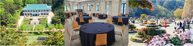 좌) 영빈관 외부, 중앙) 영빈관 내부, 우) 가을 축제 사진. 사진/충북도 제공
