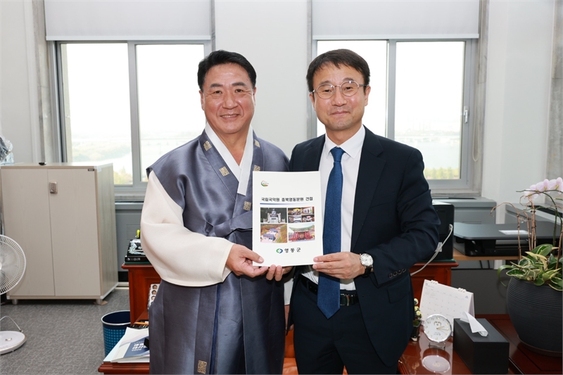 Yeongdong County Governor Jeong Young-cheol visited the National Assembly on the 4th to request support for including 200 million KRW in the 2025 government budget for a feasibility study on establishing a Yeongdong branch of the National Gugak Center. Governor Jeong met with Han Byung-do, Chair of the Special Committee on Budget and Accounts, Kim Gyo-heung, Chair of the Culture, Sports and Tourism Committee, and National Assembly Member Park Deok-heum.