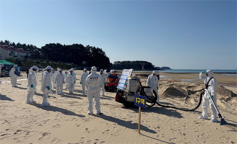 태안군과 태안해양경찰서가 공동 주관한 훈련은 예인선이 기관 고장으로 닭섬 인근 해안가에 좌초해 약 10㎘의 기름이 유출됐다는 가상 상황을 설정했다. 참석자들은 준비 및 교육, 해안 오염조사, 해안 해상 방제, 폐기물 처리, 강평 등 단계별 대응훈련을 진행했다. 180m 오일펜스, 유화수기, 고·저압 세척기, 드론, 각종 중장비 등 실제 장비를 동원했다. 해안오염조사평가(SCAT)와 모래·자갈·암반 등 해안 유형별 방제 기술 교육도 실시했다.