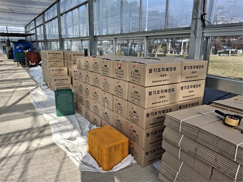 Virus-free seedlings are tissue culture seedlings that the Strawberry Research Institute multiplied in glass greenhouses after removing viruses through meristem culture. They yield an average of 16% more than strawberry seedlings that regular farms cultivate through self-propagation. The Agricultural Research and Extension Services will supply 8,500 basic Seolhyang seedlings and 2,000 foundation seedlings to agricultural technology centers and specialized nurseries in Nonsan, Gongju, Buyeo, and Hongseong-gun. It will distribute 27,000 foundation seedlings to specialized nurseries that signed ordinary implementation contracts.