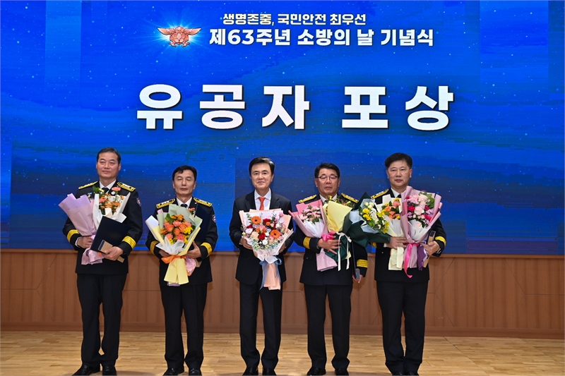 충남소방본부는 11월 7일 도청 대회의실에서 제63주년 소방의 날 기념식을 개최했다. 김태흠 충남도지사와 성호선 충남소방본부장, 고광철 도의회 건설소방위원장, 소방공무원, 의용소방대원 200여 명이 참석했다.