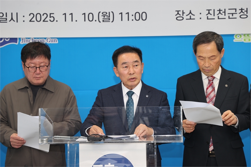 송기섭 진천군수, 진천군 친일재산 국가귀속 프로젝트 기자회견 사진. 사진/진천군