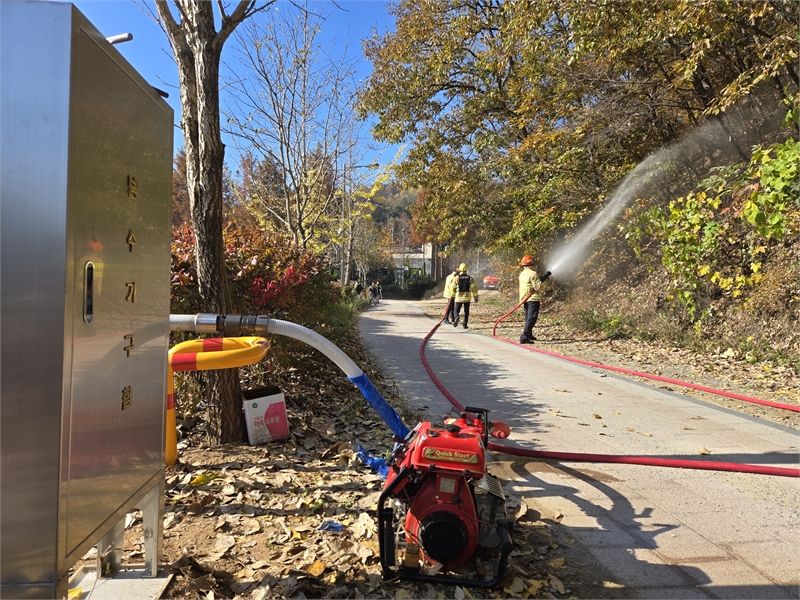 훈련에는 소방차 4대, 소방공무원 16명, 의용소방대원 10명 등 총 26명이 투입됐다. 올해 새로 도입된 인공수리시설과 소방호스가방을 중점적으로 활용해 물 공급이 제한된 산악지역에서도 신속한 초기 진압 및 현장 대응이 이루어지도록 했다.
