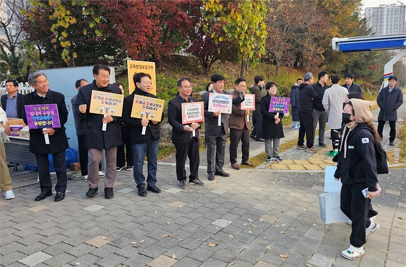 Six council members, led by Chair Lee, gathered at Seojeon High School, while two members appeared at Jincheon High School. They greeted each student entering the exam sites with cheering placards, delivering Chair Lee's message: "I sincerely wish that years of sweat and effort will bear good fruit."