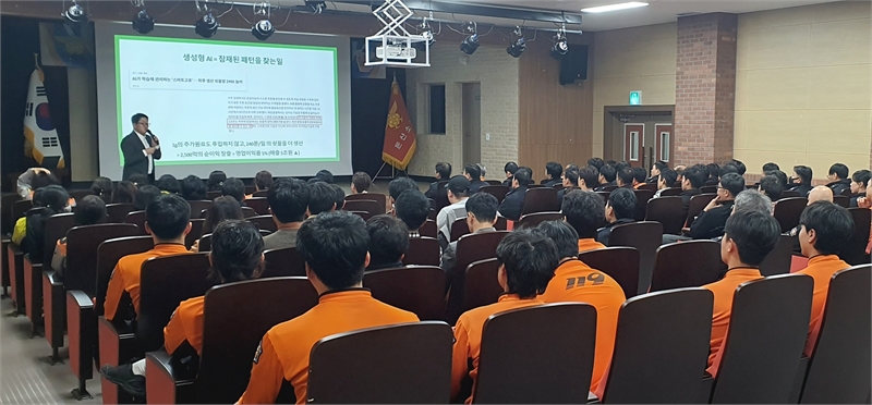 The lecture, attended by some 120 firefighters and volunteer fire department members, took place as part of the second-half workplace education and training program. Kim Dong-seok, Director of the AI Branding Research Institute, delivered the lecture in in-person format, enhancing communication and interaction among participants.