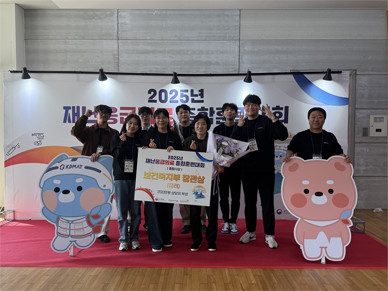 Chungnam Province announced on the 14th that it took 3rd place nationwide in the '2025 Disaster Medical Comprehensive Training Competition' hosted by the Ministry of Health and Welfare and supervised by the National Medical Center, receiving the Minister of Health and Welfare Award.