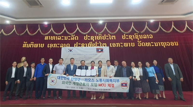 Danyang-gun signed a business agreement with the Lao Ministry of Labor and Social Welfare on August 5 for the introduction of foreign seasonal workers. According to the agreement, 60 Lao workers will enter Danyang-gun in 2026 and work legally for up to 8 months. Workers are guaranteed more than the minimum wage of the Republic of Korea. The Lao Ministry of Labor will directly escort departures and returns and operate a dedicated community for constant monitoring, along with measures to prevent worker departure. Danyang-gun applied for a national project in November.