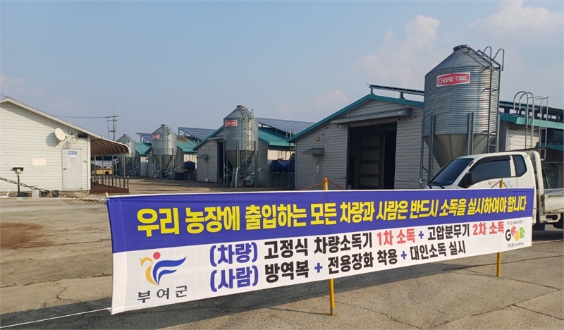 부여군은 고병원성 조류인플루엔자(AI) 확진이 가금농장 4건, 국내 야생조류 8건으로 늘어나자 가축 전염병 유입을 차단하기 위한 특별방역대책을 10월부터 내년 3월까지 시행한다고 밝혔다. 부여군은 구제역과 아프리카돼지열병(ASF)도 동시에 차단한다.