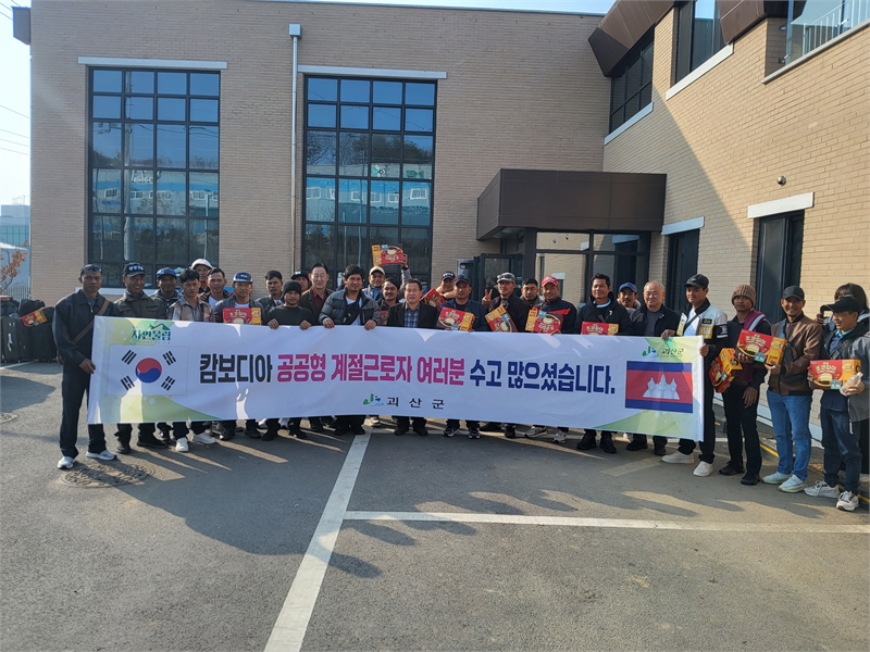 Goesan County, North Chungcheong Province (County Governor Song In-heon) held a farewell event on the 24th ahead of the departure of 44 Cambodian public-type seasonal workers. The workers, who entered the country in April, were deployed to farms cultivating major agricultural and specialty products including peppers, corn, tobacco, and kimchi vegetables in Goesan County for approximately 8 months, contributing significantly to alleviating the rural labor shortage.