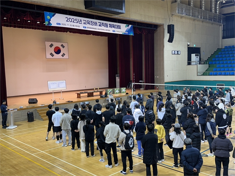 홍성교육지원청(교육장 임광섭)은 11월 22일 토요일 홍주문화체육센터와 홍성군장애인스포츠센터에서 '2025 교육장배 교직원 체육대회'를 개최했다. 관내 학교 교직원 322명이 참가한 이번 대회는 배구 10개팀과 2인3각 3개팀 총 13개팀이 참여했다.