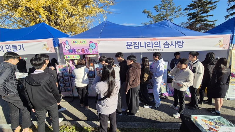 Hap-deok Youth Culture Center deployed youth participants and performance club members on-site. Staff operated three experiential booths: cotton candy preparation, acorn caricature drawing, and early Christmas decoration crafting. The initiative addressed physical and psychological distance barriers while actively promoting the facility and its diverse programs to regional youth.