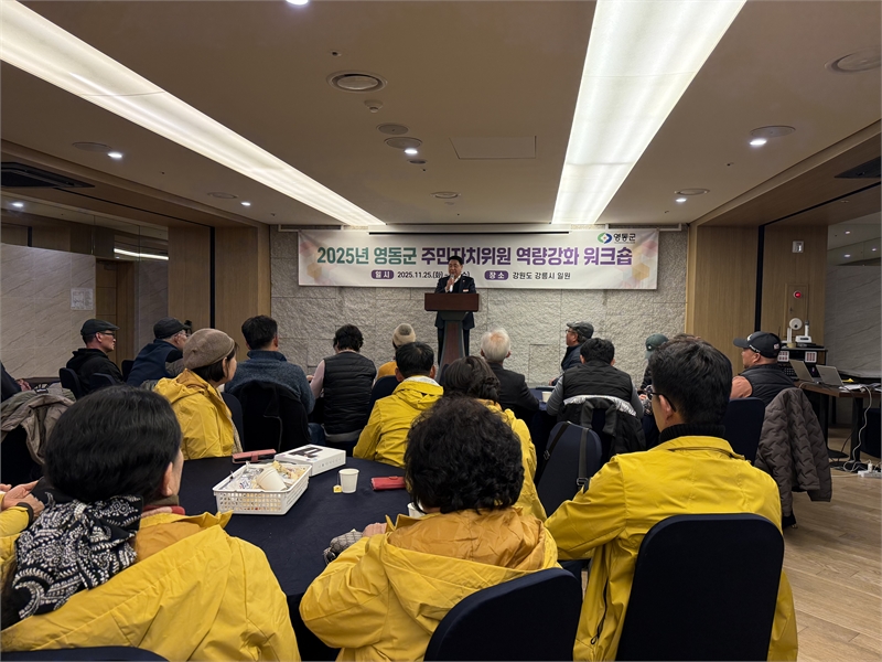 영동군이 25일부터 26일까지 강원도 강릉시 SL호텔에서 주민자치위원 117명을 위한 역량강화 워크숍을 개최했다. 관내 11개 읍·면 주민자치위원이 참여한 이번 행사는 지역 공동체 활동 활성화 방안을 중심으로 진행됐다.
