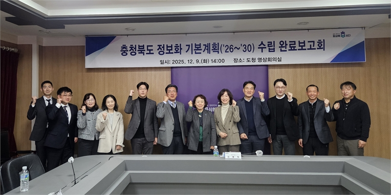 충청북도는 12월 9일 도 영상회의실에서 「충청북도 정보화 기본계획」수립 완료보고회를 개최했다. 2026년부터 2030년까지 5개년간 추진될 정보화 중장기 계획을 확정한 것이다. 행정국장과 산학연 전문가, 한국지역정보개발원 관계자 등 20명이 참석해 추진 경과와 주요 내용을 공유했다.