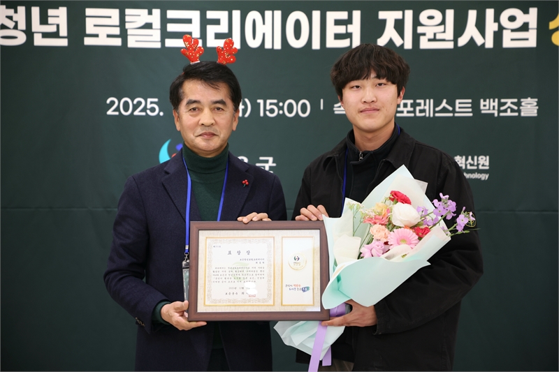 보은군,‘청년로컬크리에이터’성과공 ... 장 수여 최재형군수 최동형 크리에이터.사진/보은군
