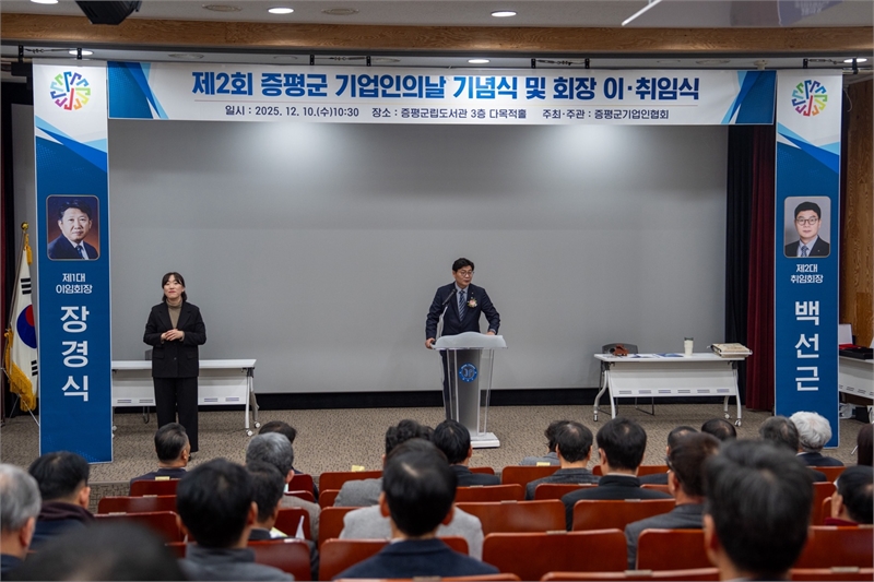 증평군이 10일 증평군립도서관 다목적홀에서 제2회 증평군 기업인의 날 기념식을 개최했다. 증평군기업인협회가 주관한 행사에 김선희 부군수, 조윤성 군의장, 박병천 도의원, 이상찬 충북기업인협회장 등 지역 기업인 및 경제 단체장 100여 명이 참석했다.