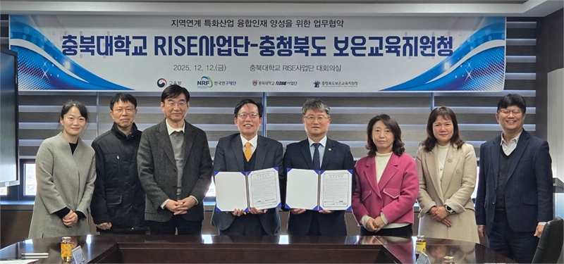 The Boeun Office of Education (Director Jeon Byeong-il) signed a memorandum of understanding with Chungbuk National University's RISE Project Group. The agreement, reached on Friday the 12th at Chungbuk National University's Industry-Academic Collaborative Technology Research Institute, aims to cultivate convergence talent in drone, artificial intelligence, and autonomous vehicle technologies.