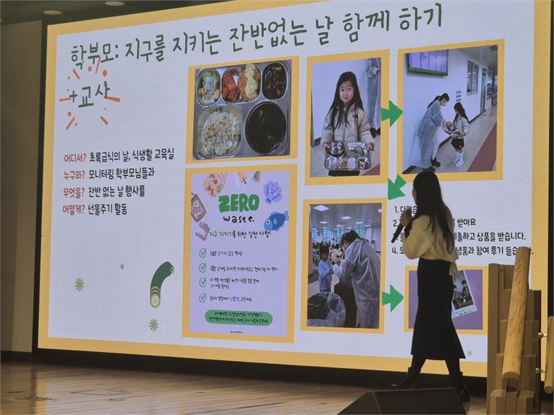 Nutrition teacher Song Yu-sol presented the highest award case from the school meal food waste reduction contest with the theme 'Green Meals with the Educational Community.'