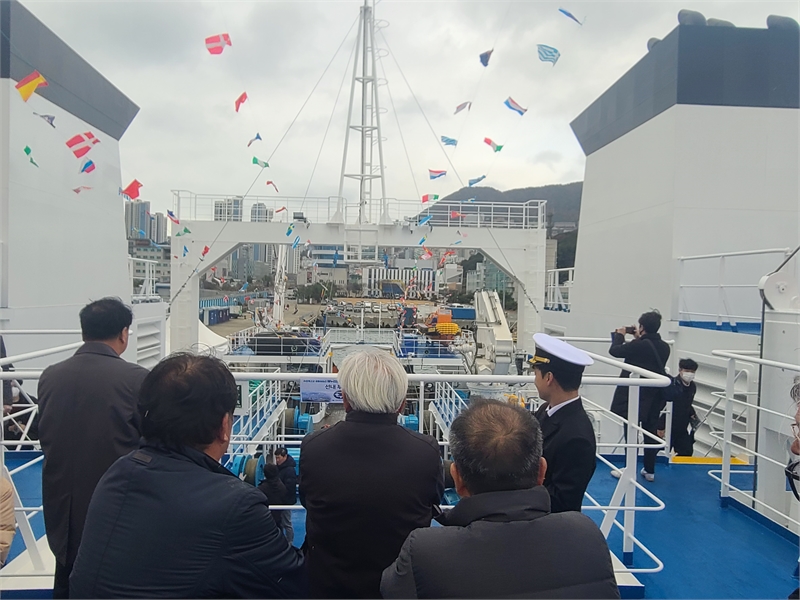 충남교육청(교육감 김지철)은 12월 12일(금) 부산광역시 부산해양경찰서 부두에서 전국 수산계고교 공동실습선 취항식을 개최했다. 올해 건조를 완료한 실습선 '해누리호'는 2026년부터 충남해양과학고등학교에서 본격 운영된다.