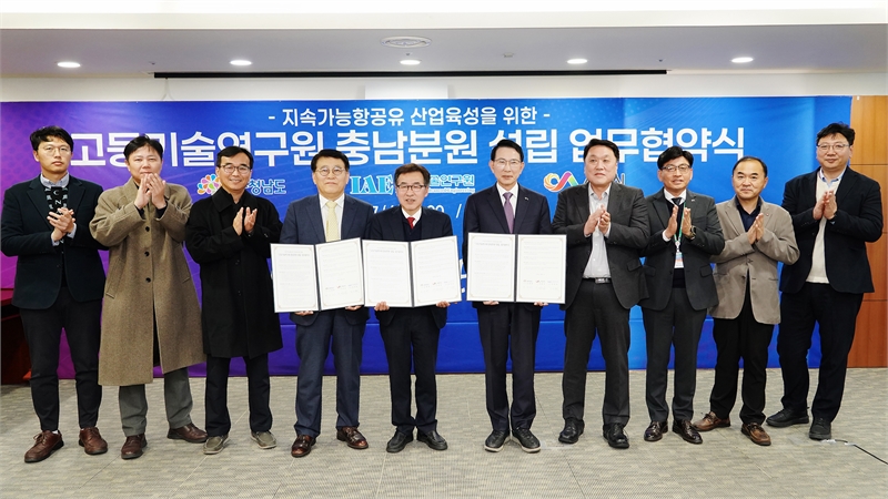 Seosan City signed a business agreement on December 17 to establish a Chungnam Branch of the Advanced Institute of Technology at the Chungcheongnam-do Provincial Government Office. Yi Wan-seop, Mayor of Seosan, Jeon Hyeong-sik, Political Vice-governor of Chungcheongnam-do, and Kim Jin-gyun, President of the Advanced Institute of Technology, exchanged the agreement. The agreement aims to foster and commercialize the sustainable aviation fuel industry.