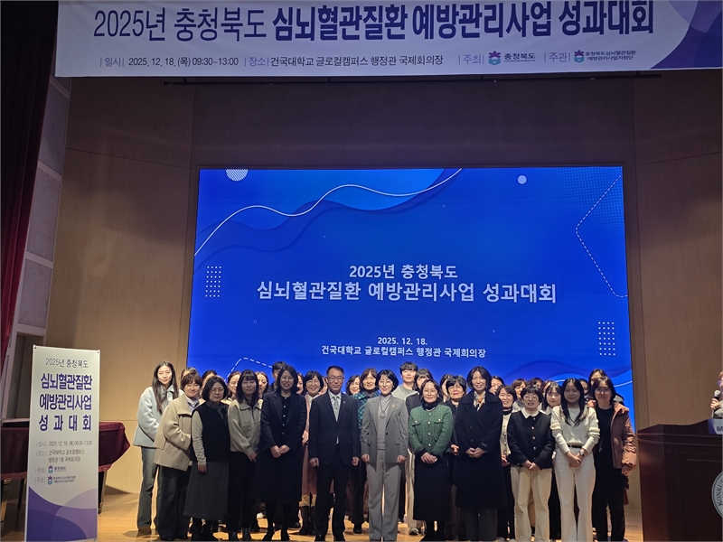 ◆ 충청북도가 주최하고 충청북도 심뇌혈관질환예방관리사업지원단이 주관하는 '2025년 충청북도 심뇌혈관질환예방관리사업 성과대회'를 18일 오전 10시 건국대학교 글로컬캠퍼스 국제회의장에서 개최했다. 도청, 시군 및 사업지원단 관계자 50여 명이 참석했다.