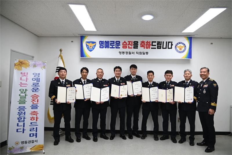 Yeongdong Police Station Promotes 9 Officers to Senior Inspector Rank Subtitle: Promotion Appointment Ceremony Held Ahead of New Year