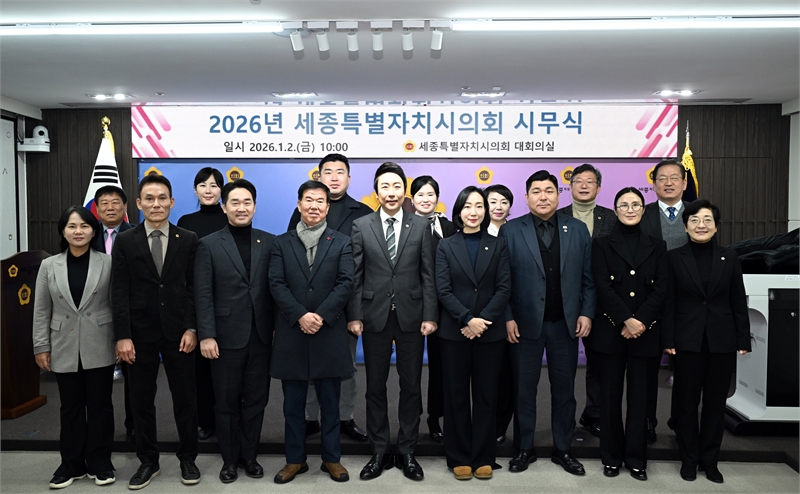 세종시의회는 같은 날 오전 10시 의원과 의회사무처 전 직원 100여 명이 참석한 가운데 2026년 시무식을 개최했다. 시무식에서 참석자들은 새해 의정 운영 방향과 목표를 공유했다.