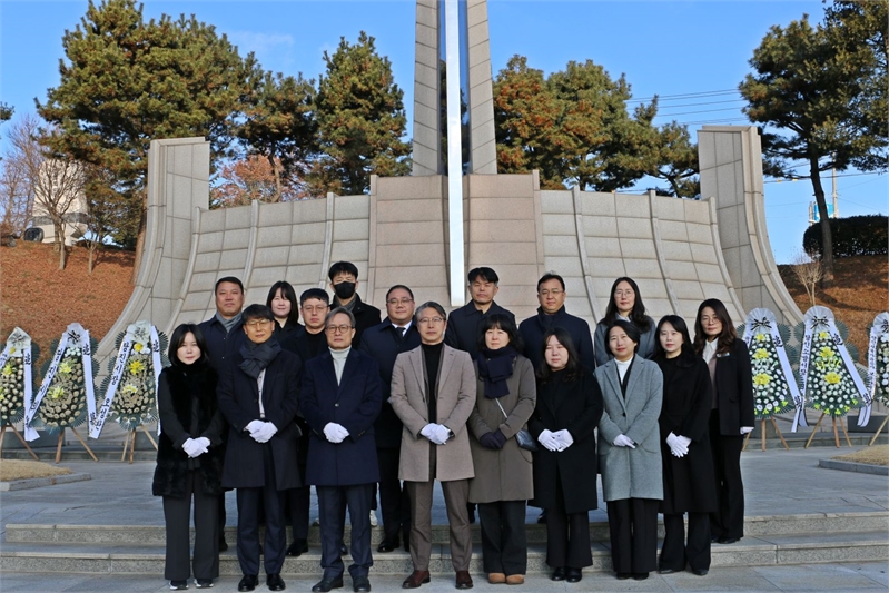 당진교육지원청이 2일 나라사랑공원 현충탑을 찾았다. 신년 참배를 통해 2026년 교육행정을 시작한 것이다. 이날 참배에는 정은영 교육장을 포함해 과장 및 팀장 등 간부공무원 21명이 참석했다. 참석자들은 헌화와 묵념으로 순국선열과 호국영령의 숭고한 뜻을 기렸다.