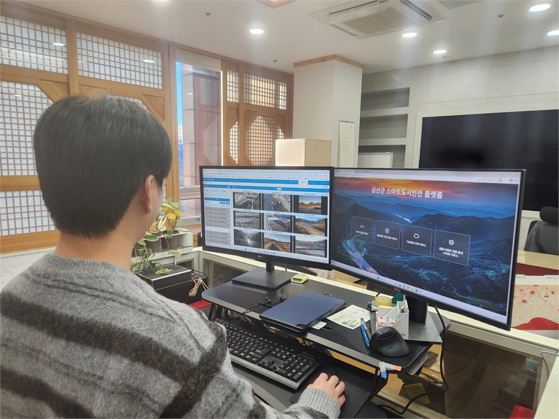 금산군은 스마트도시안전 플랫폼을 2월부터 공무원 대상으로 서비스한다. 이 플랫폼은 실시간 데이터 기술을 통해 산불과 하천 재난 영상을 즉시 확인할 수 있다. 차량 교통량, 유동인구, 날씨, 강수량, 환경정보, 하천수위 데이터도 함께 제공된다.