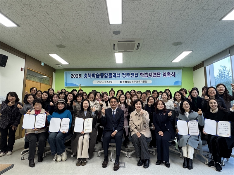 청주교육지원청(교육장 박종원)은 5일 청주교육지원청 중회의실에서 '2026년 학습종합클리닉 청주센터 학습지원단 위촉식'을 개최했다. 학습코치 30명과 학습서포터즈 14명으로 구성된 학습지원단 44명을 위촉했다.