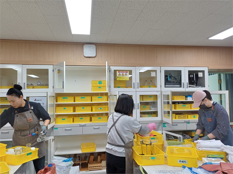 Seven members of the Seosan Office of Education School Support Center's Special Room Organization Support Team participated on site. The support team inspected science equipment stored in Gobuk Elementary's science lab and supported the disposal of unused science equipment. They also systematically classified and organized science equipment considering frequency of use and curriculum relevance.