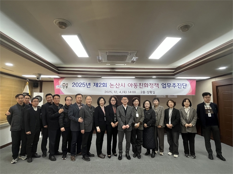 ◆ 논산시 제2회 아동친화정책 업무추진단 회의 열어논산시는 4일 시청 상황실에서 2025년 제2회 아동친화정책 업무추진단 회의를 개최했다. 이번 회의에서 주요 아동 정책 추진 현황을 점검했다. 아동참여위원회가 제안한 과제 검토 결과도 공유했다. ◆ 업무추진단 20명 구성 연 2회 정기 회의 운영 아동친화정책 업무추진단은