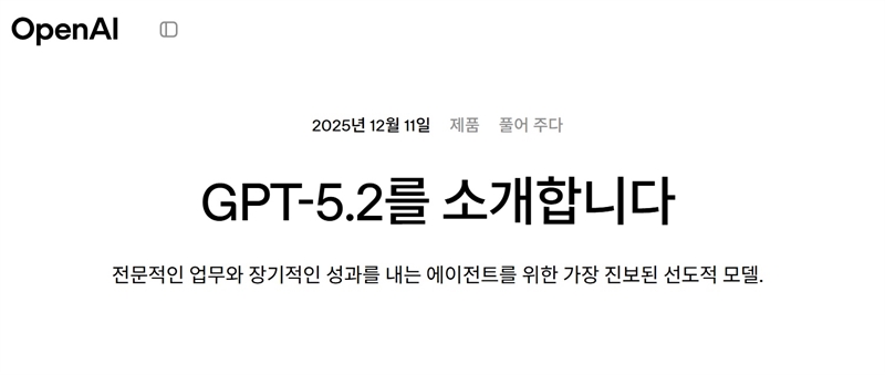 오픈AI GPT-5.2 공개…제미나이 3 견제 위해 출시 앞당겨