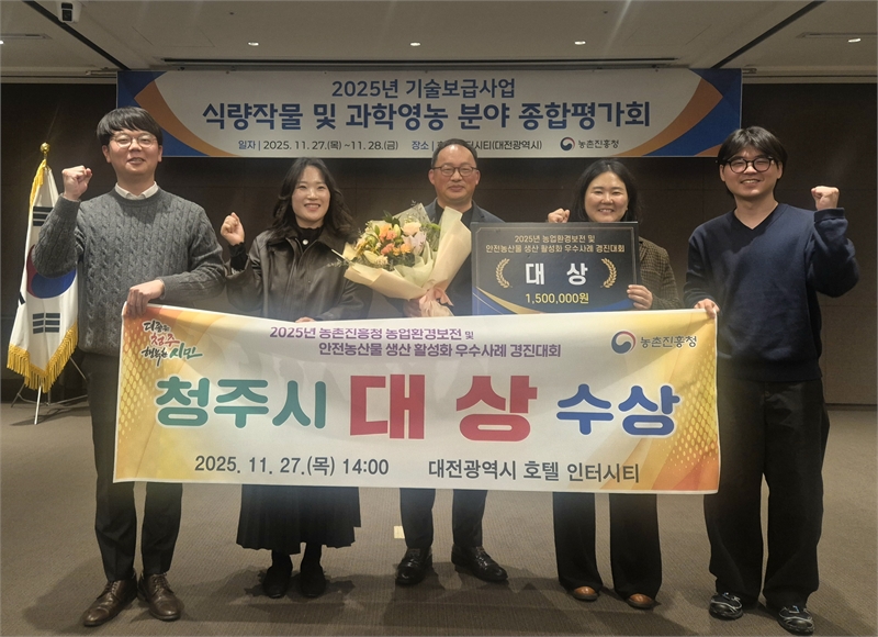 ◆ 청주시 농업기술센터 최우수 기관 선정청주시는 4일 시 농업기술센터가 농촌진흥청 주관 2025년 우수 지방농촌진흥기관 평가에서 최우수 기관으로 선정됐다고 밝혔다. 농촌진흥청은 전국 156개 농업기술센터를 대상으로 농업기술보급 성과, 농업현장 애로 해소, 농촌자원 활성화, 전문역량 개발 등 9개 핵심지표를 종합 심사했다.
