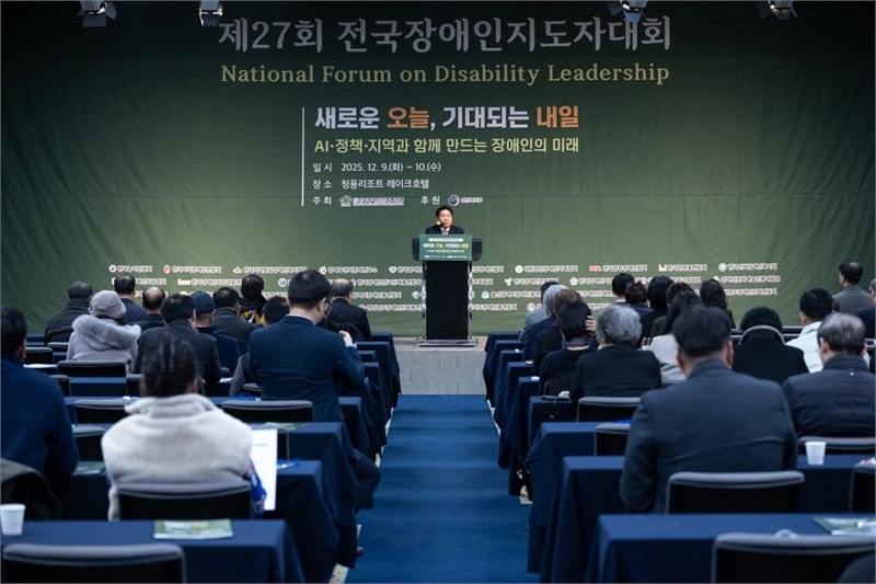 ◆ 한국장애인단체총연맹이 지난 9일부터 10일까지 제천 청풍리조트 레이크호텔에서 제27회 전국장애인지도자대회를 개최했다. 이번 행사는 장애인 복지의 미래를 모색하는 자리로, '새로운 오늘, 기대되는 내일(AI·정책·지역과 함께 만드는 장애인의 미래)'을 핵심 주제로 삼았다. 전국 장애인단체 지도자들이 한 자리에 모여 장애