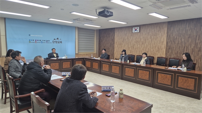 ◆ 교육정책자문위원회 정기회 개최단양교육지원청이 11일 오후 2층 소회의실에서 교육정책자문위원회 정기회를 개최했다. 이번 회의는 2025년 하반기 주요사항을 점검하고 2026년 교육정책 방향을 결정하는 자리로 진행됐다. ◆ 2025년 추진성과와 2026년 계획 보고 단양교육지원청은 회의에서 2025년 주요업무 추진성과를