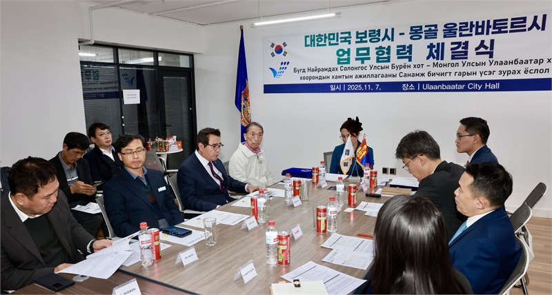 보령시는 7일 몽골 울란바토르시와 우호협력 양해각서를 체결했다. 보령시 대표단이 울란바토르를 공식 방문해 양 도시 발전을 위한 협력 기반을 마련했다.