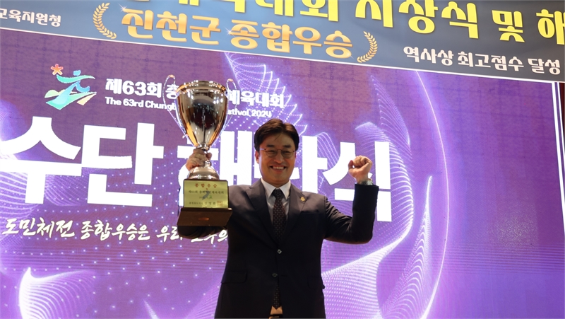 Photo of Kim Myeong-sik, Prospective Candidate for Jincheon County Governor, taken after overall victory at Chungbuk Provincial Sports Festival Photo/Kim Myeong-sik