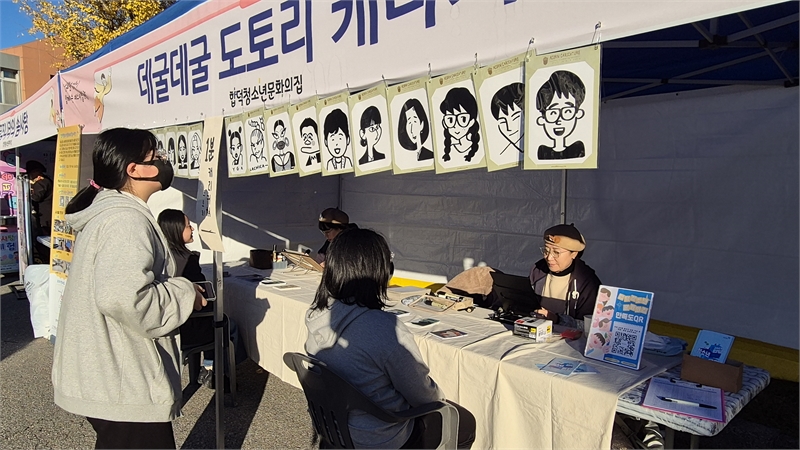 Hap-deok Youth Culture Center deployed youth participants and performance club members on-site. Staff operated three experiential booths: cotton candy preparation, acorn caricature drawing, and early Christmas decoration crafting. The initiative addressed physical and psychological distance barriers while actively promoting the facility and its diverse programs to regional youth.