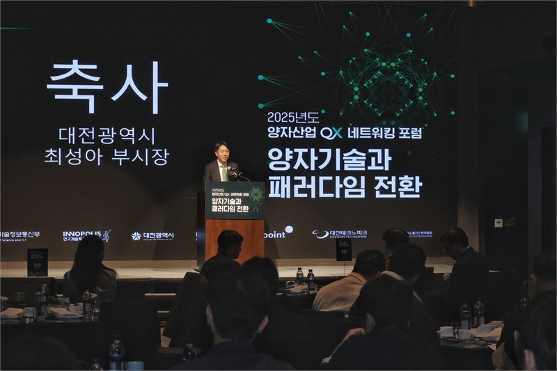 Daejeon City held the '2025 Quantum Industry QX Networking Forum' at Onoma Hotel on December 4. Korea Research Institute of Standards and Science and Blue Point Partners co-organized the event. The forum was designed to share second-year achievements of the 'Quantum Computing Quantum Transformation (QX) Scale-up Valley Development Project' promoted with the Ministry of Science and ICT and to strengthen industry-academia-research-government cooperation networks. About 100 participants attended, including officials from the Ministry of Science and ICT, the Innopolis Foundation, project participants, and experts.